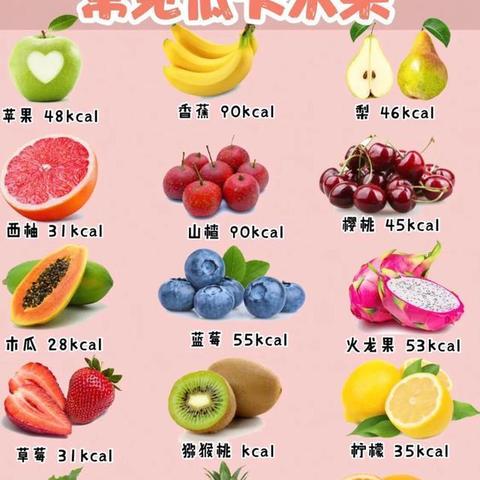 1、苹果:约每100克含有约52千卡的热量。